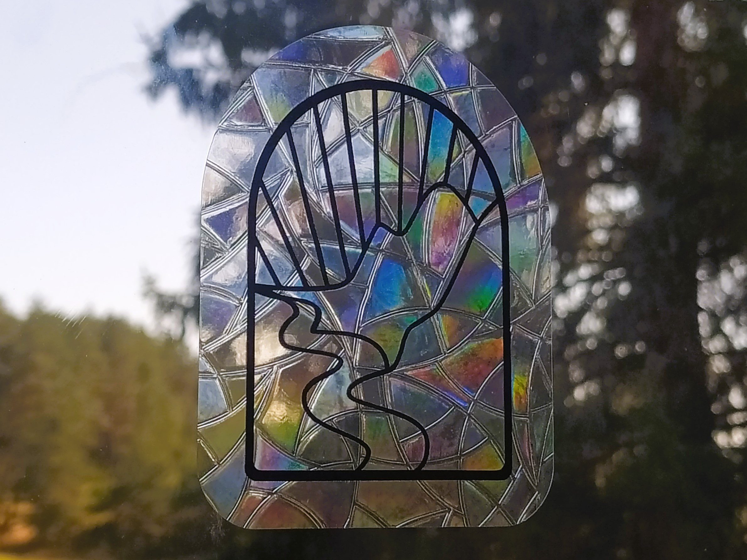 Le vinyle semi-transparent holographique réagit à la lumière naturelle et crée de sublimes reflets arc-en-ciel lorsque le soleil traverse la vitre