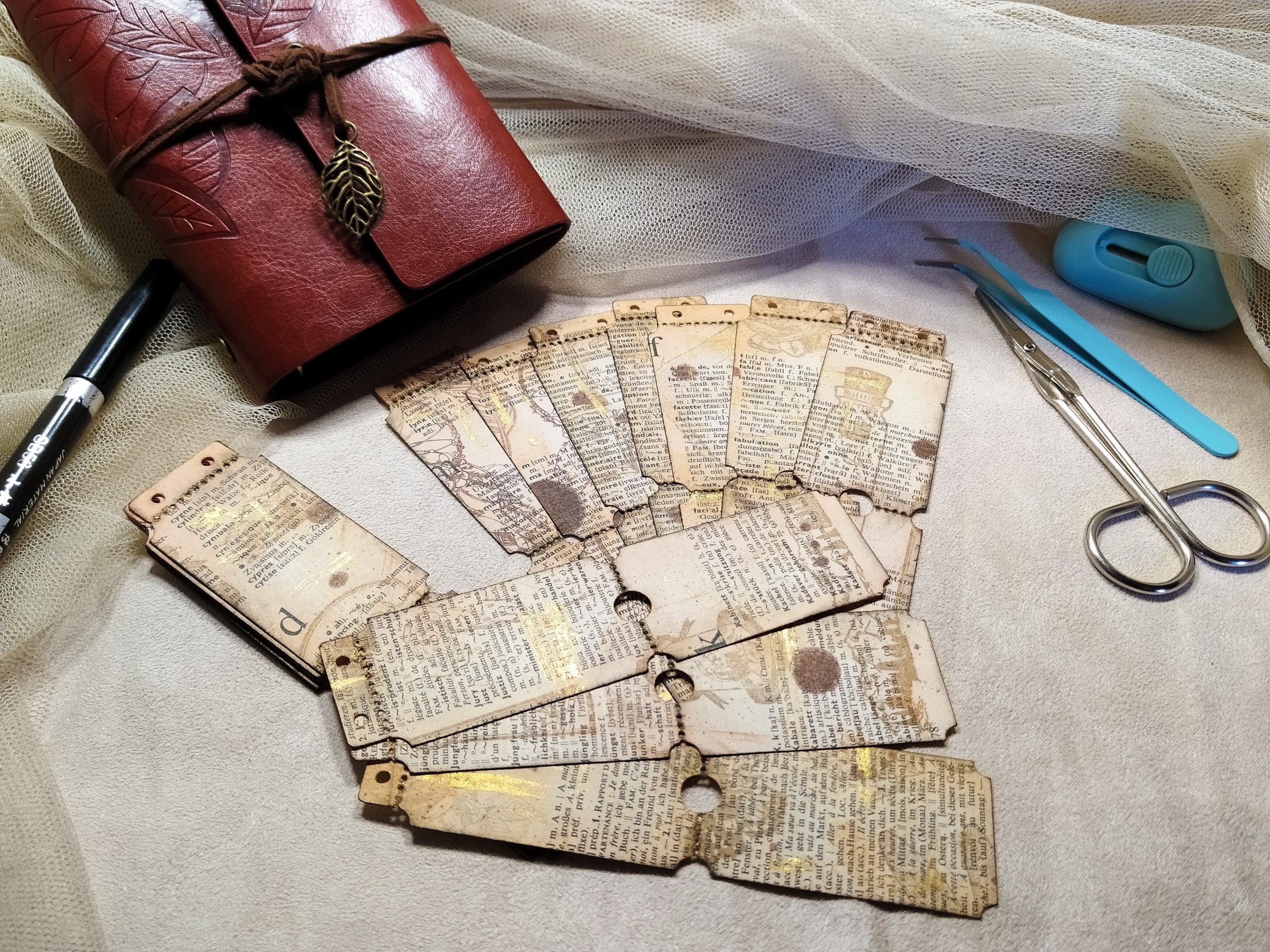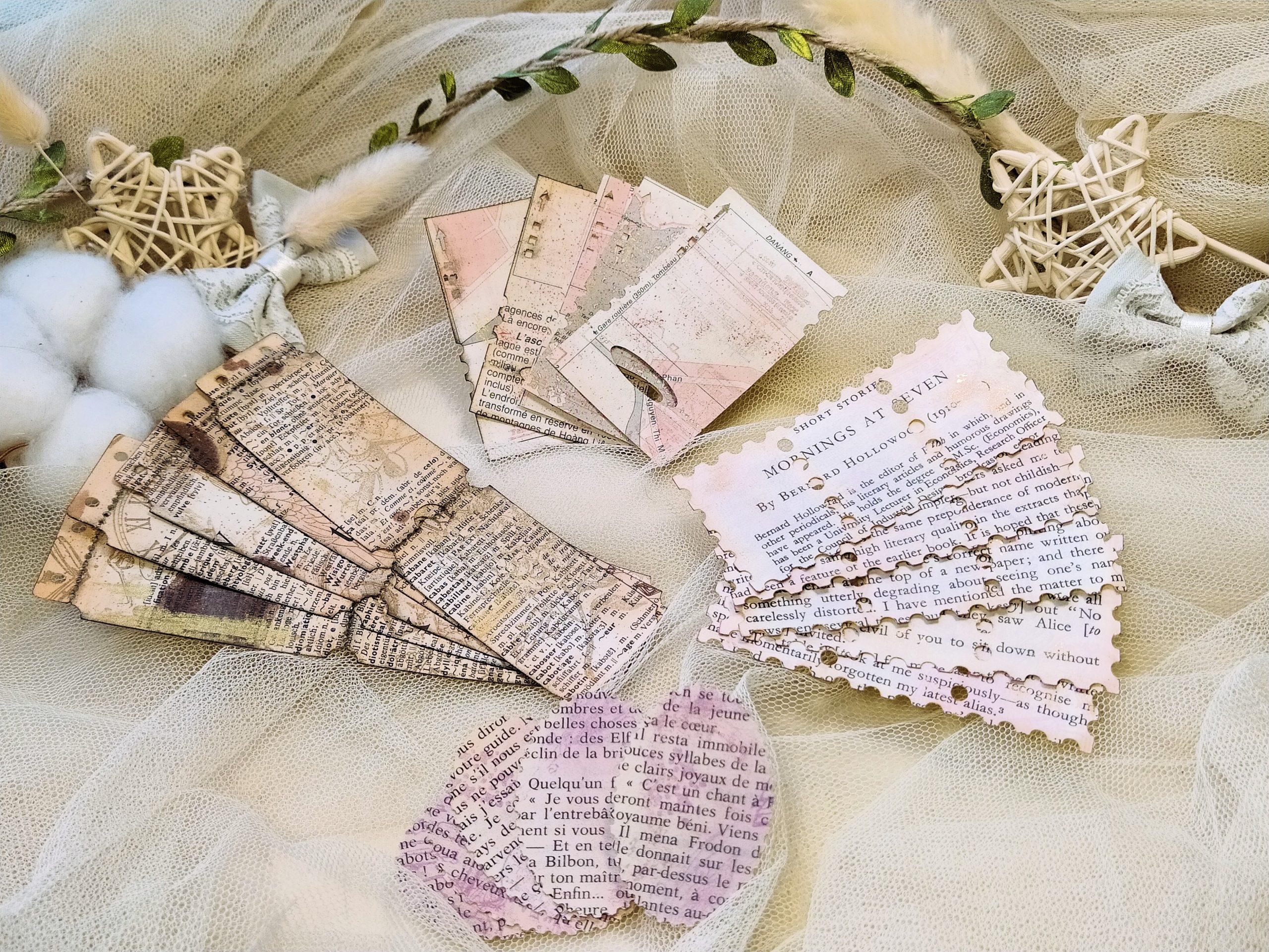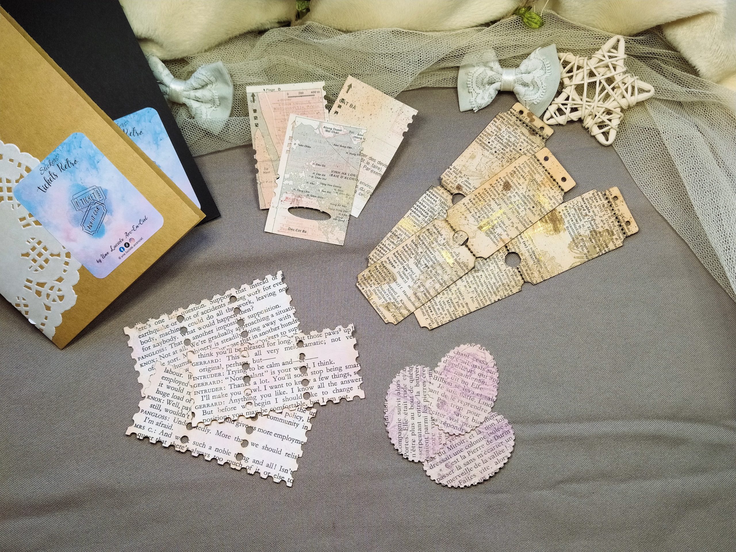 Ces différentes pages se transforment ici en éléments décoratifs uniques, parfaits pour enrichir tes pages créatives